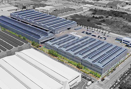 건물의 마감재와 태양광발전 기능이 동시에 가능한 시스템 (국내 최초 건물일체형 태양광발전(BIPV) 국토교통부 건설신기술 지정(제832호) 보유) 태양광발전 모듈을 건물의 마감재(지붕, 벽)로 이용하여 에이비엠의 PANEL SYSTEM과 결합한 BIPV 시스템으로 건물의 지붕, 벽의 기능과 전기생산을 동시에 실시하여 수익창출과 친환경 건물의 가치 향상에 기여