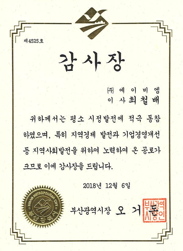 부산광역시 감사장