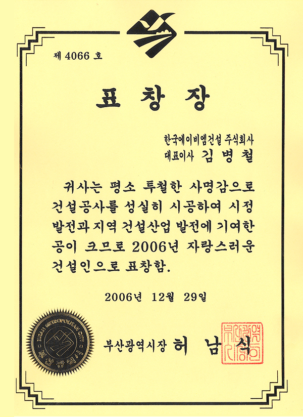 부산광역시 표창장