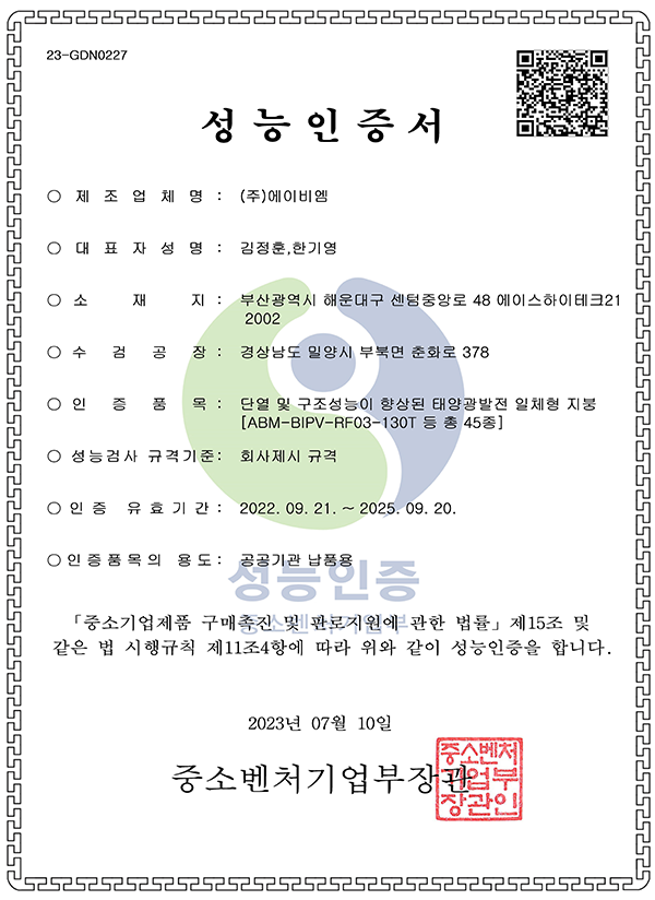 성능인증서(태양광발전)