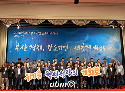 2020 부산 강소기업(Pre-챔프) 인증서 수여식 (주)에이비엠 2024-11-01 (주)에이비엠 0 901 2024.11.01 08:00 (주)에이비엠 부산 강소기업 인증서 수여식2020년 7월 1일 (주)에이비엠이 부산 강소기업으로 선정되어 시상식에 다녀왔습니다.(주)에이비엠