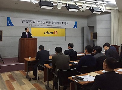 청탁금지법 교육 및 직원 청렴서약 다짐식2016년 11월 17일 에이비엠그린텍의 밀양공장에서 청탁금지법 교육 및 직원의 청렴서약 다짐식이 있었습니다.에이비엠그린텍에서는 정정당당하고…