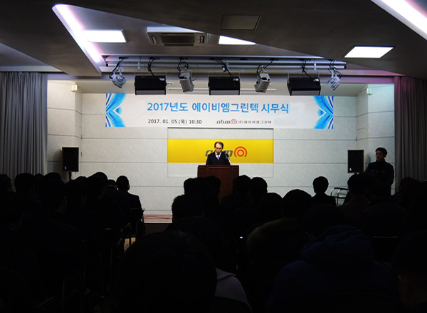 2017 에이비엠그린텍 시무식 (주)에이비엠 2024-11-01 (주)에이비엠 0 962 2024.11.01 08:00 2017년 에이비엠그린텍 시무식2017년1월5일 에이비엠그린텍 밀양공장에서2017년 새로운 출발을 다짐하는 시무식을 진행하였습니다.정유년에도 한걸음 한걸음 더 발전하는 에이비엠그린텍이 되겠습니다.(주)에이비엠