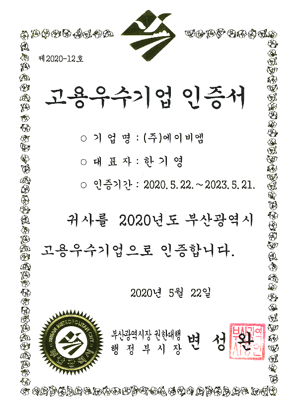 Certification of Excellent Employment Companies 2024-12-06 Major Certifications 0 1368 2024.12.06 13:43 No. 2020-12
