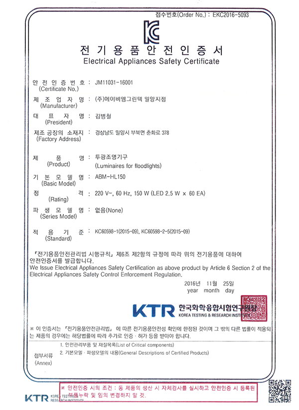 KC Electrical Equipment Safety Certificate 2024-12-06 Major Certifications 0 1202 2024.12.06 13:26 JM11031-16001