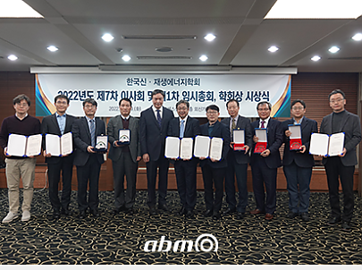 「 2022년 한국 신재생에너지학회 기술혁신대상 」2022년도 제7차 이사회 및 제1차 임시총회, 학회상 시상식이 있었습니다.(주)에이비엠 기술혁신대상 수상(주)에이비엠