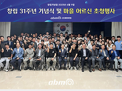 2023 창립 31주년 기념식(주)에이비엠은 창립 31주년을 맞아 창립 기념식 행사와 함께부북면 춘화리 마을 어르신들과 함께 식사대접 및 초청행사를 진행하였습니다.다시 한번 참석하…